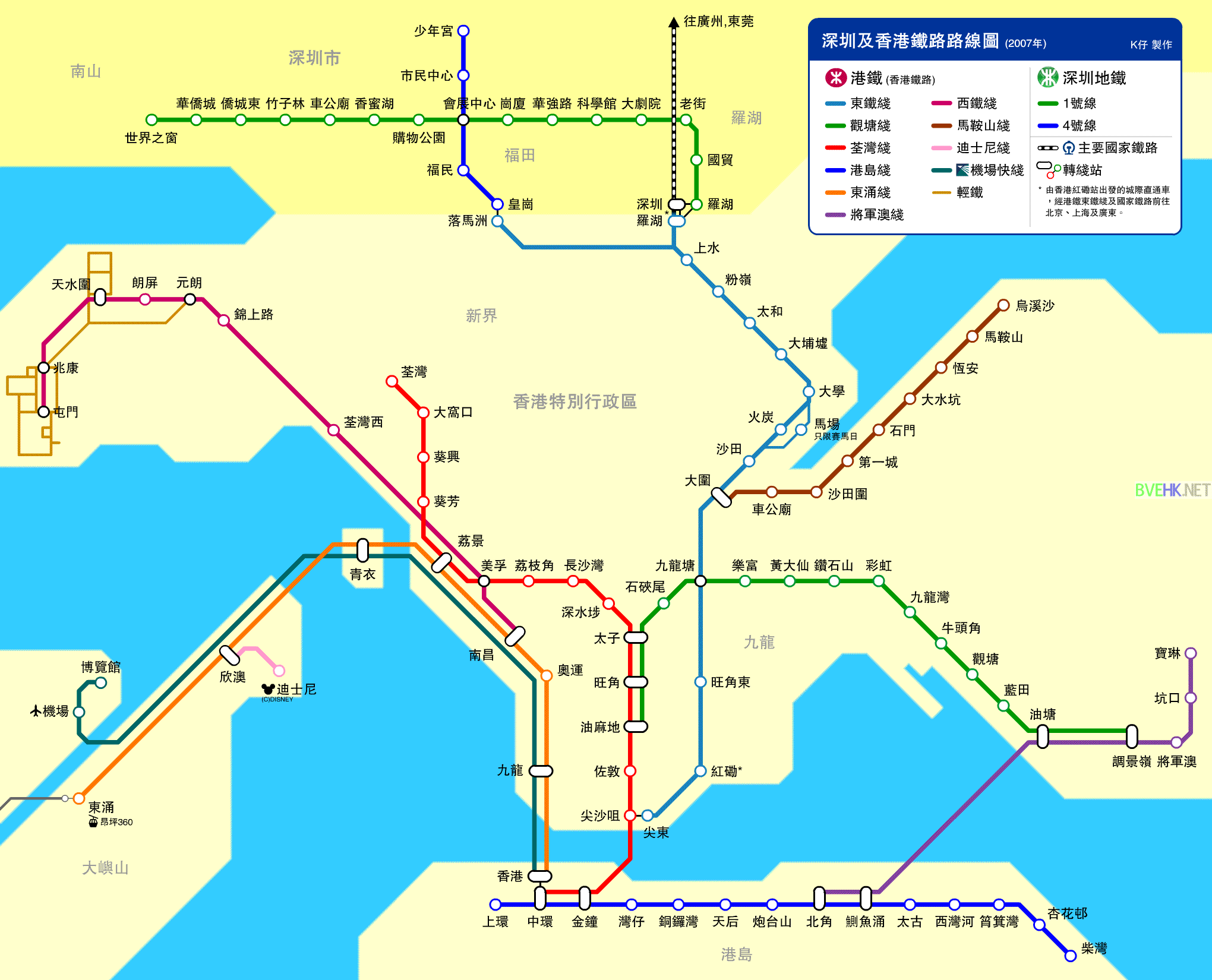 深圳及香港鐵路線路圖 http://m.ttw158.com/htm/xgxlt.gif
